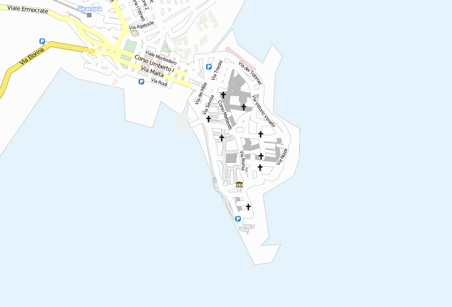 Durch diesen praktischen Kathedrale von Syrakus-Stadtplan entdecken Sie die Straßen und Plätze auf Sizilien und sehen Sie wie weitere Sizilien-Urlauber die Gebiete nahe.